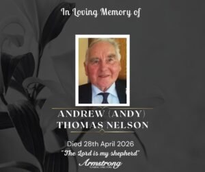 NELSON, ANDREW (ANDY) THOMAS Peacefully at Altnagelvin Hospital and late of 39 Laghel Road, Killen, Castlederg. Dearly beloved husband of Jean. A devoted father of