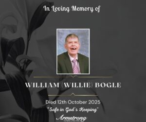 BOGLE, WILLIAM (WILLIE) Peacefully at Altnagelvin Hospital and late of Silverdale Nursing Home, Castlederg. Dearly beloved brother of Ruby, Albert, Leslie and the late Raymond,