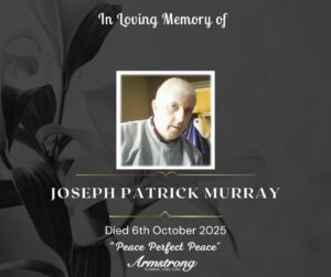 MURRAY, JOSEPH PATRICK Peacefully at South West Acute Hospital and late of 9 Mullan Park, Mountfield, Omagh. Dearly beloved son of Dennis and the late