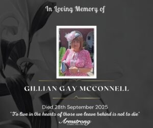 McCONNELL, (née MONTGOMERY) GILLIAN GAY Peacefully at her late home, 14 Derrybard Road, Fintona. Dearly beloved wife of Richard. A devoted mother of Matthew and