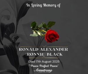 BLACK, RONALD ALEXANDER (RONNIE) Suddenly in Accrington, Lancashire, England. Dearly beloved son of Muriel and the late Ernie. A loving brother of Sandra and the