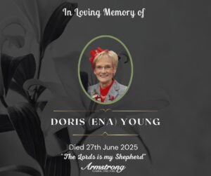 YOUNG, DORIS (ENA) Peacefully at Causeway Hospital, Coleraine and late of 4 Deverney Park, Omagh. Dearly beloved wife of Victor, and dear sister of Sandra,