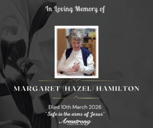 HAMILTON, (née MONTEITH), MARGARET (HAZEL) Peacefully surrounded by her loving family at Hillcrest Nursing Home. Dearly beloved wife of the late Ernie. A devoted mother