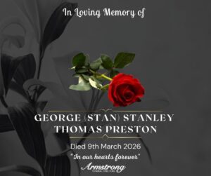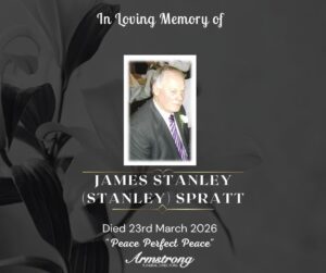 SPRATT, MARCH 23rd 2026 JAMES STANLEY (STANLEY) Peacefully at Omagh Palliative Care (after a long illness patiently borne) and late of 66 Dublin Street, Newtownstewart.