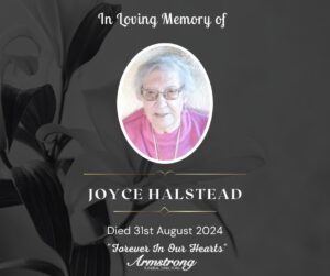 HALSTEAD, JOYCE Peacefully at her late home Woodland Cottage, 16 Drumnabey Road, Castlederg. Dearly beloved wife of the late Brian, a devoted aunt of Margaret