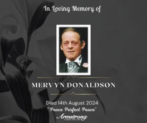 DONALDSON, MERVYN Peacefully at South West Acute Hospital and late of 58 McClay Park, Omagh. A devoted father of Stephen (Karen), Rodney (Katherine), Roberta (John)