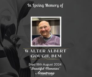 GOUGH, BEM WALTER ALBERT Peacefully at South West Acute Hospital and late of 3 Grove Terrace, Sion Mills. Dearly beloved husband of the late Georgie,