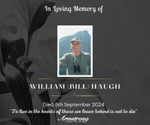 HAUGH, WILLIAM (BILL) Passed away peacefully. Late of 17 Georgian Villas, Hospital Road, Omagh. Dearly beloved husband of Dorothy, a devoted father of Judith (Andy)