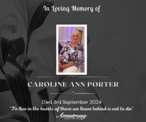PORTER, (née SPROULE) CAROLINE ANN Peacefully at her late home, 8 McKinley Bungalows, Clanabogan, Omagh. Dearly beloved wife of the late Robin, a devoted sister