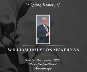 McKERNAN, WILLIAM HOUSTON Peacefully at Altnagelvin Hospital and late of 72 Glennelly Road, Plumbridge. Dearly beloved husband of Mabel, a devoted father of Christopher, Ryan