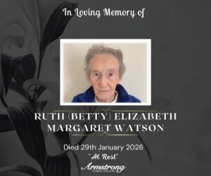 WATSON, RUTH (BETTY) ELIZABETH MARGARET Peacefully at The Mater Hospital and late of 4 Annadale Terrace, Belfast. Dearly beloved daughter of the late Rebecca and