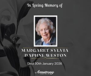 STEWART, (née DOHERTY), MARGARET JANE (GRETTA) Peacefully at her late home, Lis-lea Cottage, 127 St Dympna’s Road, Dromore. Dearly beloved wife of the late Harold,