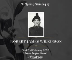 WILKINSON, ROBERT JAMES Peacefully at Altnagelvin Hospital and late of 11 Castleview, Newtownstewart. Dearly beloved husband of June. A devoted father of Noel, Robert, Andrew,