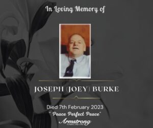 BURKE, JOSEPH (JOEY) Peacefully at Camphill Community House, Clanabogan. Dearly beloved son of the late Bobby and Beck, a devoted brother of
