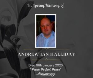 HALLIDAY, ANDREW IAN Tragically at his late home, 3 Edinburgh Park, Omagh. Dear beloved son of Irene and the late David, devoted father