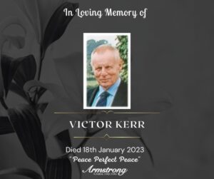 KERR, January 18th, 2023 VICTOR Peacefully at Omagh Hospital and late of Flat 35, St. Julians House, St. Julians Road, Omagh. Dear beloved father, Grandfather,