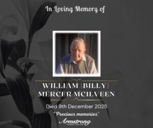 McILVEEN, WILLIAM (BILLY) MERCER Peacefully at South West Acute Hospital and late of 239 Ballynahatty Road, Fintona. Dear brother of Roy and the late Nat