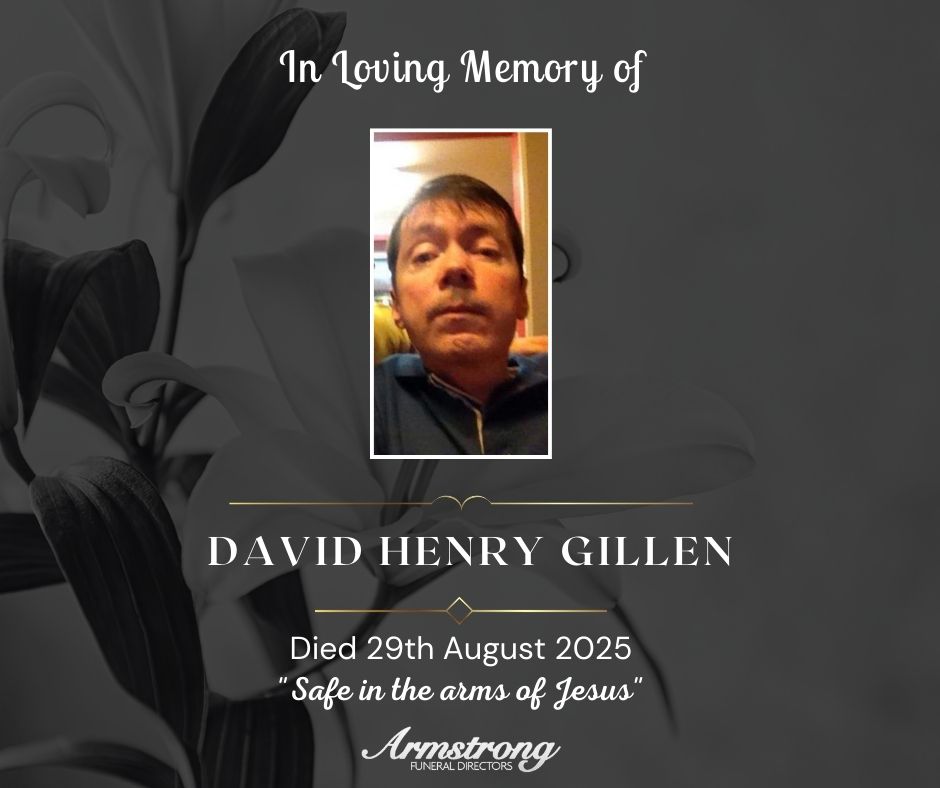 Service of Thanksgiving for the life of David will be held in Derg Parish Church on Monday at 2:00pm followed committal in Castlederg New Cemetery.