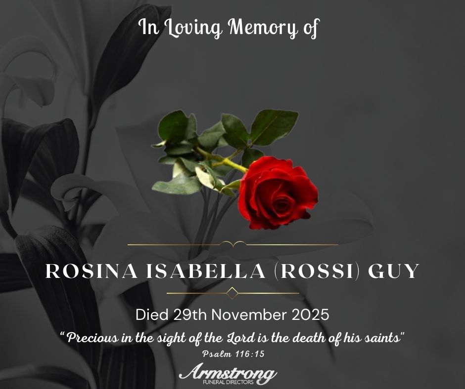 Service of Thanksgiving for the life of Rossi will be held in Omagh Independent Methodist Church on Tuesday at 1.00pm followed by committal in Fintona Cemetery.