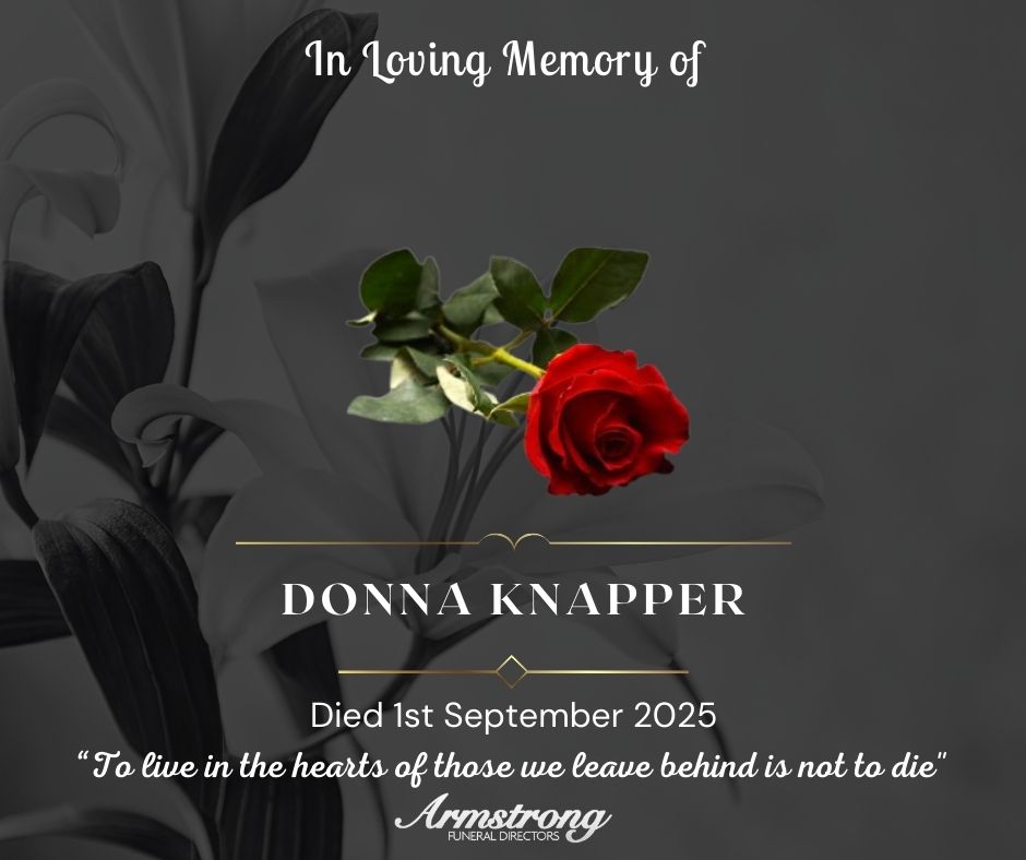 Service of Thanksgiving for the life of Donna will be held in her late home on Thursday at 12 noon followed by committal in Sixmile Cemetery, 20 Moylena Park, Antrim.