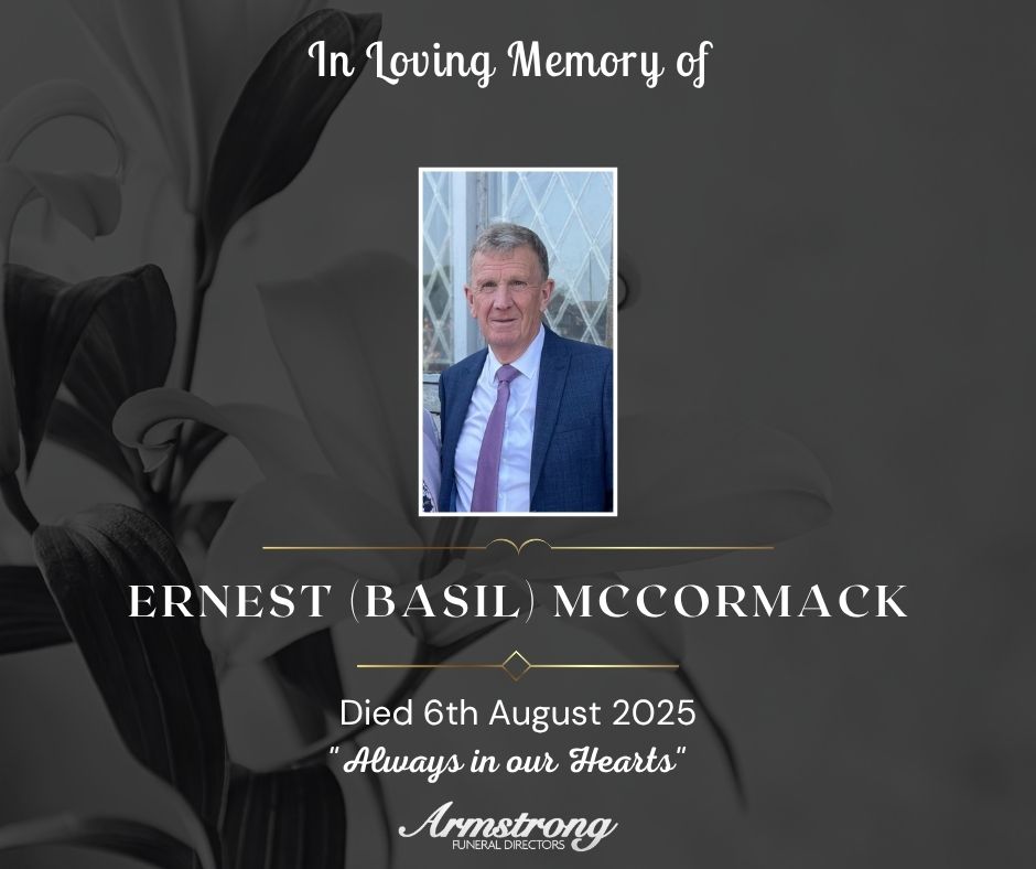 Service of Thanksgiving for the life of Basil will be held in Drumquin Methodist Church on Saturday at 1:00pm followed by committal in Castlederg Cemetery.