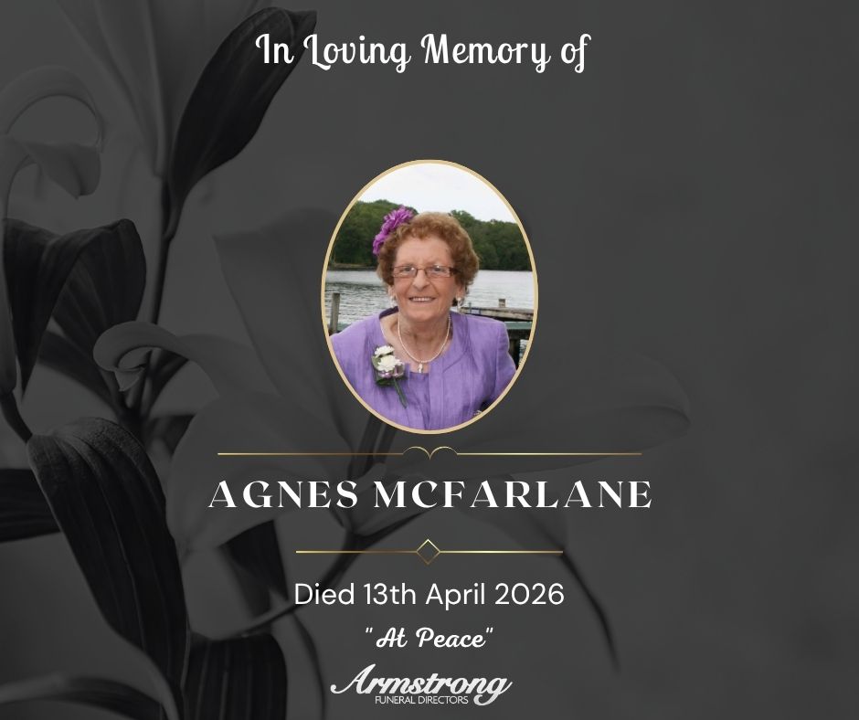 Everyone is welcome to call at Armstrong’s Funeral Home today (Tuesday) from 6-8pm.