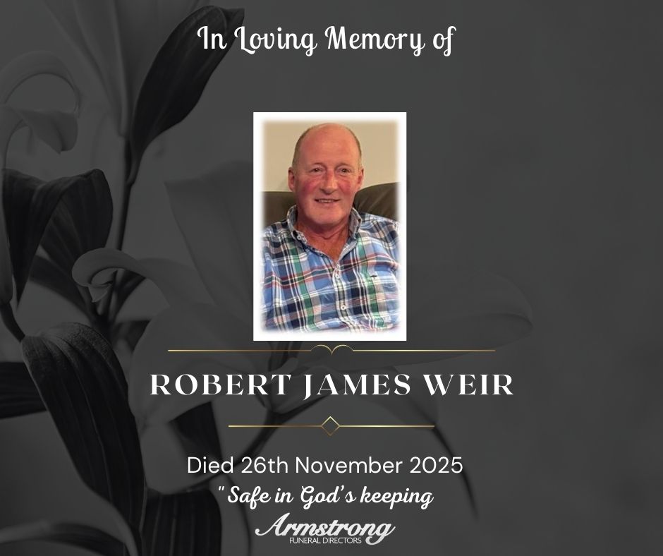 Service of Thanksgiving for the life of Robert will be held in Colaghty Parish Church on Saturday at 1:00pm followed by committal in adjoining graveyard.